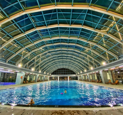 - Hạng mục thi công: Cung cấp lắp đặt kết cấu thép mái trượt bể bơi – Nhà để xe B2-CC01